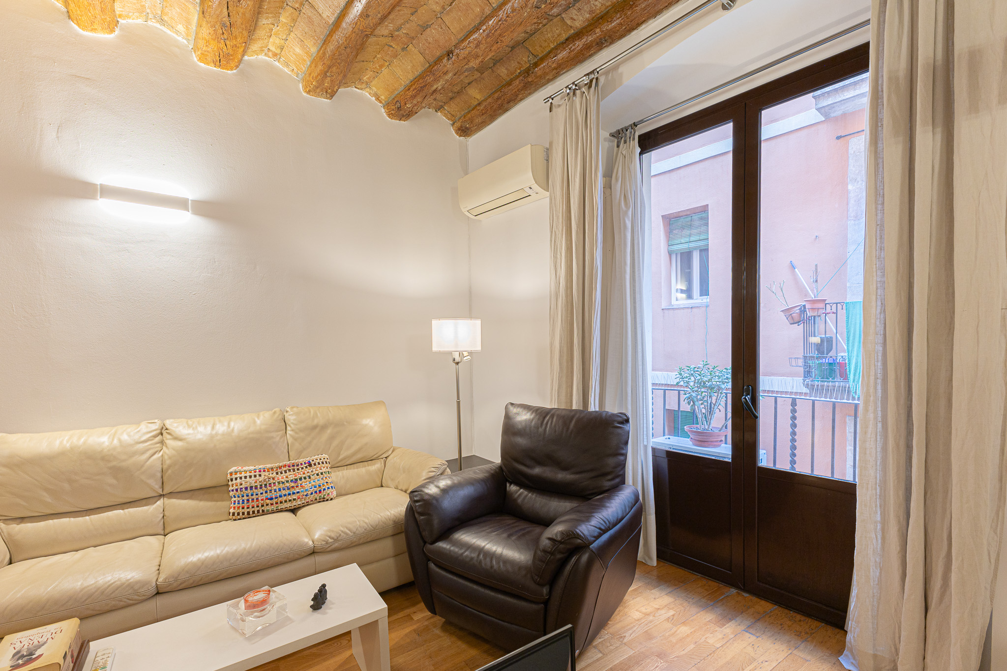 Bienvenido a este acogedor apartamento en el Raval. Con una superficie total de 48 metros cuadrados, este hogar ofrece un ambiente acogedor y práctico, ideal para quienes buscan una residencia céntrica y funcional. El apartamento se sitúa en la primera planta de un edificio sin ascensor, histórico, construido en 1885, y conserva elementos originales, como los techos de vigas de madera y volta catalana. Su distribución maximiza el uso del espacio, creando un entorno cálido y acogedor. Este apartamento cuenta con un salón comedor con cocina integrada, un dormitorio doble muy amplio con armarios empotrados, y un baño principal. Perfecto para quienes viven solos o en pareja y valoran la simplicidad sin renunciar al estilo. Descubra la esencia de la vida urbana en Barcelona con este acogedor apartamento. Una oportunidad única para disfrutar de la historia y la modernidad en una de las ciudades más vibrantes del mundo.