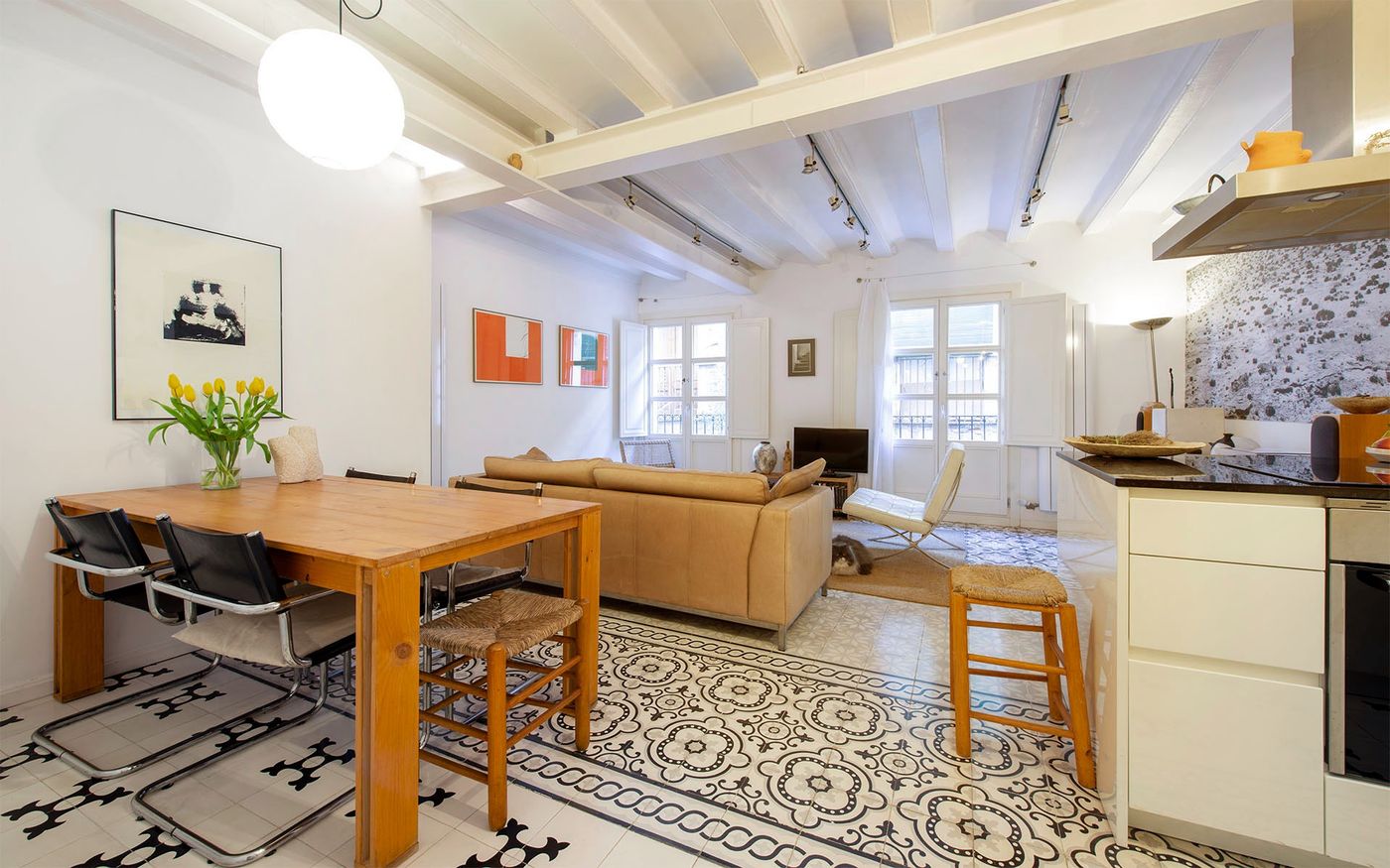 Los centros de las ciudades que se preocupan por su patrimonio tienen serias condiciones respecto a lo que se puede o no construir. En el interior de los pisos no hay ningún control, por lo que a los amantes de las viviendas bonitas solo nos queda cruzar los dedos y confiar en que la gente quiera, sepa y pueda respetar la esencia de los espacios con encanto. Una buena muestra de ello es esta preciosa vivienda, un piso que mantiene su esencia original e incluso la mejora. Un piso donde se ha hecho justicia, con la reforma que merece.