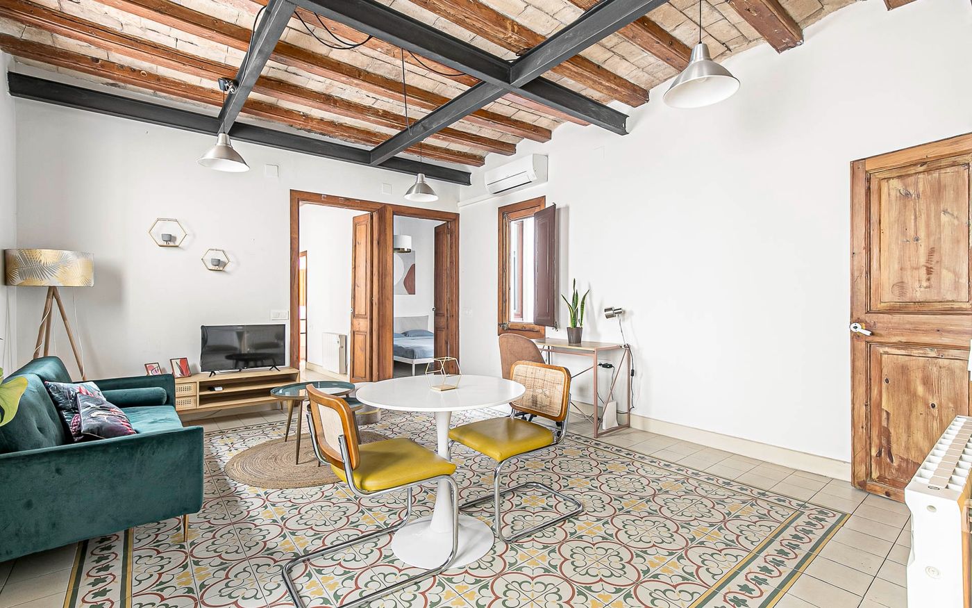 Cuando se muestra Barcelona en la ficción, pocas veces se muestran los barrios más periféricos. Ni siquiera el mítico Eixample es el distrito de la ciudad más representado en el cine o la literatura. Lo que sí vemos con frecuencia son las calles históricas de Ciutat Vella, la mezcla entre el pasado medieval y el neogótico, el modernismo y la modernidad. La vida vibrante y multicultural, la ciudad que nunca duerme, como el New York, New York de Sinatra. Y las viviendas con carácter como este piso que, por su estilo y su ubicación, podría ser el mejor ejemplo del auténtico espíritu de Barcelona.