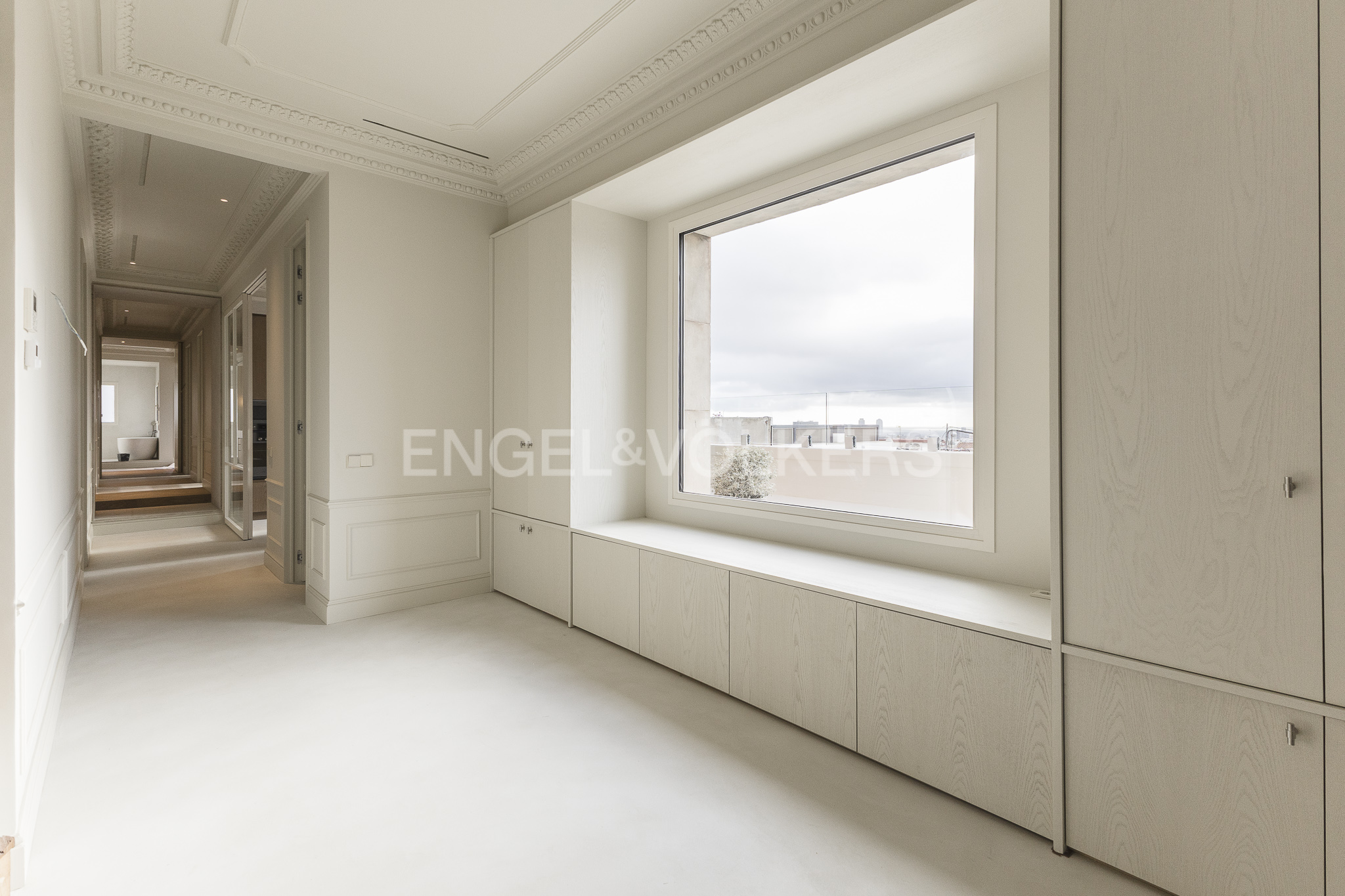 Exclusivo ático dúplex de 250 m² interiores y 200 m² de terrazas privadas, ubicado en las plantas superiores de un edificio histórico completamente rehabilitado. Combina el encanto clásico con un diseño contemporáneo y las más altas calidades. Distribución La planta principal alberga un amplio salón-comedor con acceso directo a la terraza y una cocina integrada de diseño con mobiliario en madera de roble, encimeras de acero inoxidable y electrodomésticos de gama alta Gaggenau y Liebherr. En la planta superior se encuentran las zonas exteriores, distribuidas en varios niveles con piscina climatizada con hidromasaje, solárium y áreas ajardinadas. Gracias a su orientación a tres vientos, disfruta de luz natural todo el día y espectaculares vistas sobre la ciudad. Acabados y equipamiento • Suelos de tarima de madera natural en espiga. • Carpinterías Technal con doble vidrio y aislamiento térmico-acústico. • Armarios empotrados retroiluminados y acabados premium. • Baños con piedra natural, microcemento y griferías de diseño. • Sistema de climatización por aerotermia Daikin con tres zonas independientes. • Paneles solares para autoconsumo y máxima eficiencia energética. • Domótica integral (iluminación, climatización y seguridad). • Sistema de seguridad con control biométrico y cámaras IP Full HD. Terrazas exteriores • 200 m² en varios niveles. • Piscina climatizada con hidromasaje. • Pavimento porcelánico antideslizante. • Pérgolas metálicas con lamas orientables. • Jardineras con riego automático e iluminación ambiental. ________________________________________ Una vivienda única que combina elegancia, tecnología y confort, con una espectacular zona exterior privada y vistas incomparables. Ideal para quienes buscan exclusividad, diseño y calidad de vida en pleno corazón de la ciudad.