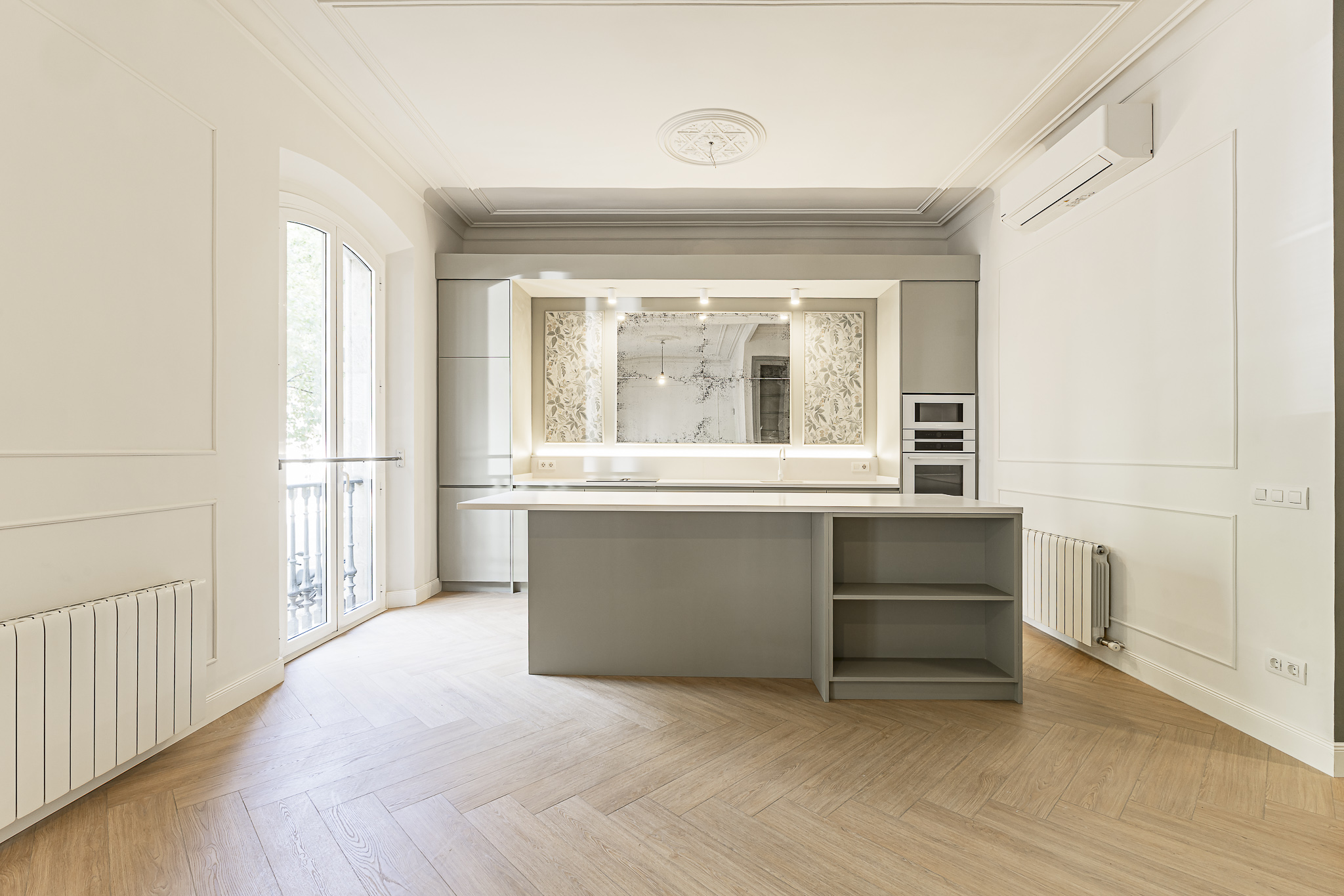 Propiedad de carácter clásico situada en una distinguida finca regia a escasos pasos de Passeig de Gràcia. La vivienda de 160m2 aproximadamente ha sido reformada íntegramente con materiales de alta calidad, respetando y realzando los elementos originales propios de las fincas regias, techos altos con molduras, carpinterías restauradas y detalles arquitectónicos, logrando una combinación perfecta entre historia, confort y elegancia. Accedemos a la vivienda a través de un elegante recibidor que actúa como eje distribuidor. Desde aquí se diferencia claramente la zona de día y la zona de noche, aportando orden y privacidad. A la izquierda se abre la zona de día, presidida por un amplio salón-comedor de generosas dimensiones, con chimenea y grandes ventanales que inundan el espacio de luz natural. La altura de techos y los elementos originales restaurados refuerzan el carácter señorial de la estancia. Integrada de forma armónica, encontramos la cocina-office de diseño, totalmente equipada con isla central, que conecta visualmente con el comedor y crea un espacio ideal tanto para la vida diaria como para recibir familia y invitados. Volviendo al recibidor y avanzando por el pasillo, accedemos a un espacio polivalente actualmente concebido como despacho, perfectamente adaptable como dormitorio adicional, seguido de un aseo de cortesía. A la derecha del pasillo y de forma independiente se ubica una práctica zona de lavandería. A lo largo del pasillo que conduce a la zona de noche se organiza de un segundo y amplio baño completo de diseño con luz natural. A continuación, encontramos una agradable habitación individual y una segunda estancia, muy amplia y elegante, en medio de las dos habitaciones dobles, con una chimenea, aportando calidez y que puede destinarse como un segundo salón, biblioteca o un espacio polivalente. A la derecha de esta sala se halla una habitación doble que se complementa con un vestidor independiente que aporta funcionalidad y confort. Volviendo al segundo salón con chimenea y siguiendo enfrente, encontramos la suite principal que dispone de un baño completo. Ambas habitaciones disponen de entrada de luz natural. Una pieza única, ubicada en una finca señorial con carácter histórico, en una de las zonas más cotizadas de Barcelona, representa una oportunidad para quienes buscan amplitud, confort, elegancia y una localización excepcional del Eixample Dret.