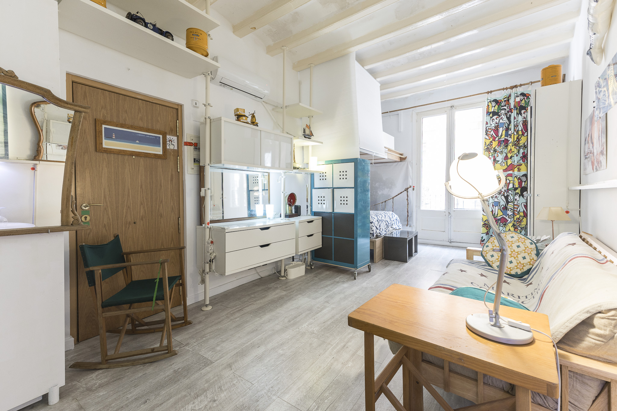 En el corazón del centro histórico de Barcelona, cerca de las Ramblas y de Plaza Catalunya, nos encontramos con este maravilloso piso con techos altos y balcón en la segunda planta de una bonita finca rehabilitada con ascensor (llegada directa en el piso) y seguridad óptima (videoportero, puertas blindadas). Originalmente la vivienda contaba con 2 dormitorios cerrados pero se reformó y optó por una distribución abierta estilo loft con un dormitorio abierto y otro en un altillo. Agradable sensación de amplitud. Cocina equipada con todos los electrodomésticos (nevera y lavadoras cambiadas en el 2024). Última reforma en el 2023 (suelos, plafón y baño). Aire acondicionado frío/ calor. Un piso perfecto para una primera compra o como pied à terre en un sitio perfecto para disfrutar del centro de Barcelona. Inversión excelente en una zona con fuerte demanda de alquiler