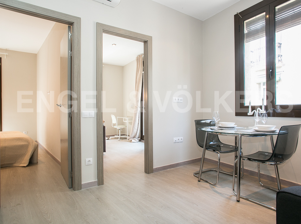 Esta encantadora propiedad de 55m2 se encuentra recién reformada con todo nuevo a estrenar. La ubicación es muy céntrica, a pasos del Museo de Arte Contemporáneo MACBA y a pocos minutos caminando de Plaza Catalunya. Comprende 2 habitaciones dobles, un salón comedor con cocina integrada, un baño completo y una pequeña habitación para la lavadora y el calentador de agua. El piso se encuentra completamente equipado listo para entrar a vivir. Disponible ya para estancias de mínimo un año.
